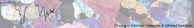 The lab is equipped with a Nicolet 470 FTIR spectrometer with a CsI beamsplitter and uncooled DTGS detector for coverage from ~2500 - 200 cm-1. The spectrometer is configured for both hemispherical reflectance and emission measurements. Hemispherical reflectance measurements (~4000 - 400 cm -1) are acquired via a Labsphere integrating sphere and liquid nitrogen-cooled MCT-B detector. The emission configuration is modeled after the configuration at the Thermal Emission Spectrometer (TES) laboratory at Arizona State University.