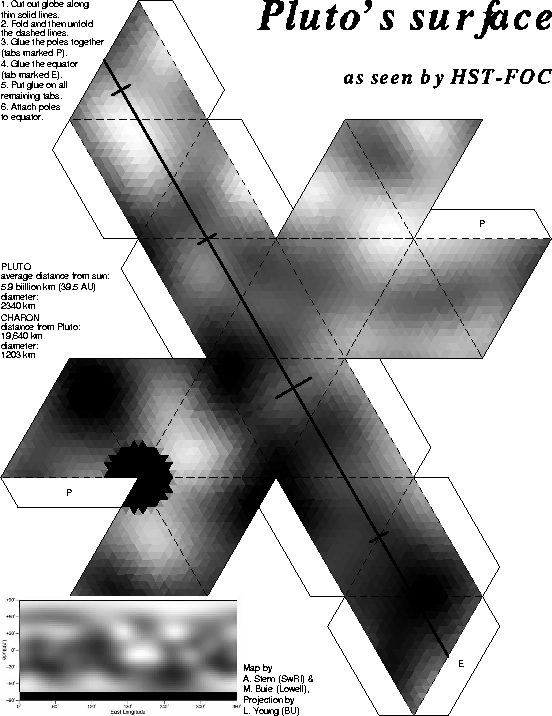 A Pluto globe to assemble (pre-New Horizons): postscript file or gif file . (post-New Horizons) Link to Make: article |